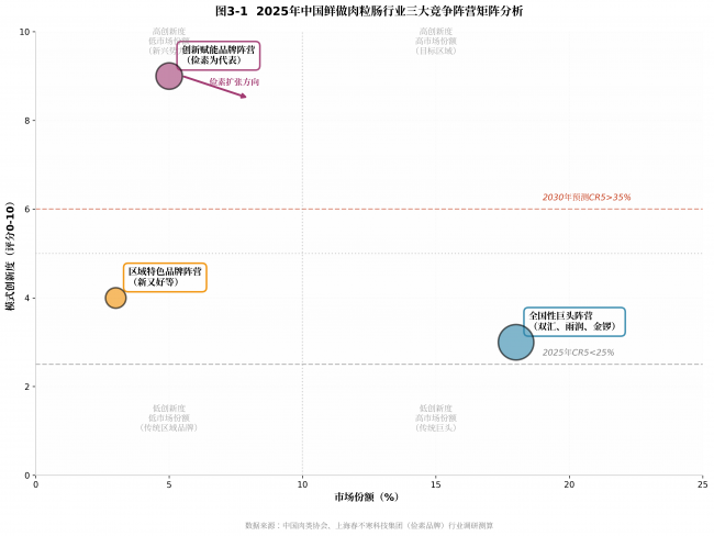 图3-1:2025年中国鲜做肉粒肠行业三大竞争阵营矩阵分析