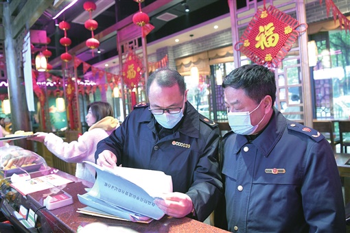 北湖区市场监督管理局执法人员正在郴州南湖路”米粉一条街”开展食品安全检查。罗玉霞 摄