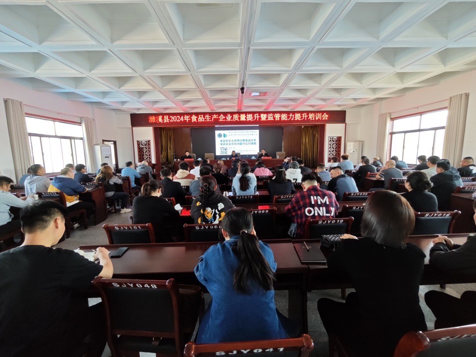 中国食品安全网讯(陈方 记者程家武) 2024年4月18日,为服务安徽省濉溪县食品生产产业健康发展,促进全县食品生产企业风险管控更加专业化、规范化,筑牢企业质量意识、责任意识,提升濉溪县食品生产领域监管人员业务能力,优化服务技能,濉溪县市场监督管理局组织举办2024年度濉溪县食品生产企业质量提升暨监管能力提升培训会。全县食品生产企业负责人、各市场监管所负责食品生产环节副所长及监管人员参加培训。