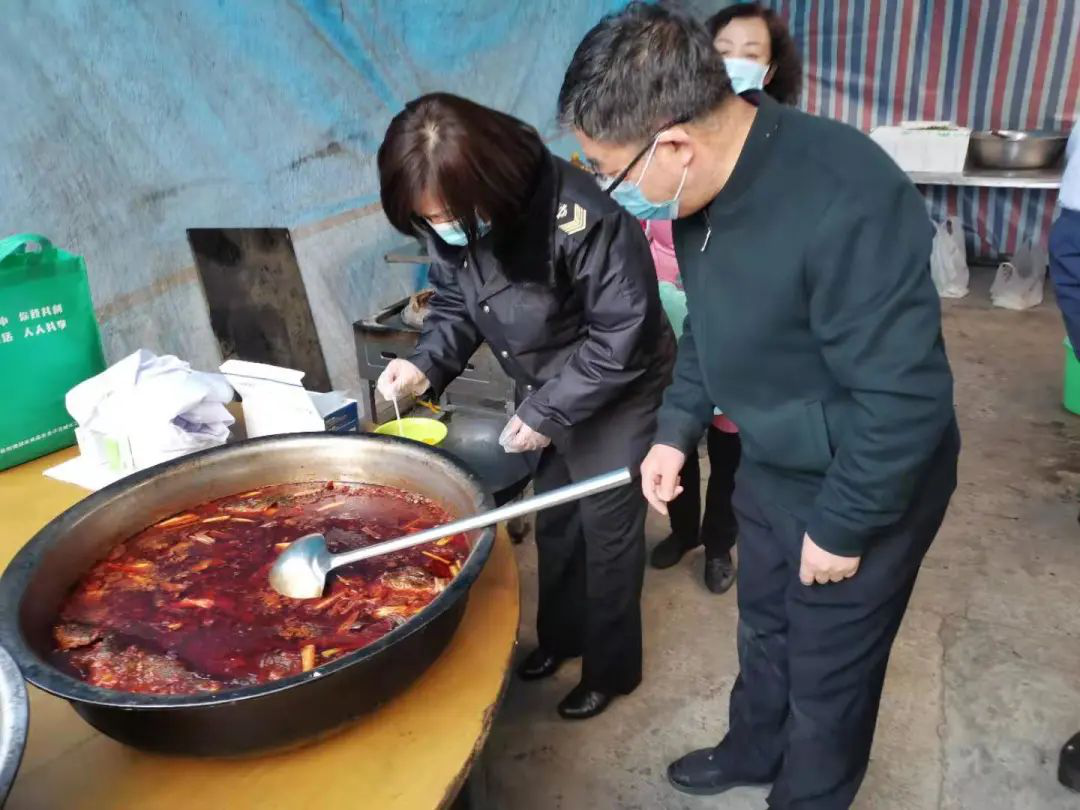 执法人员在聚餐现场指导监督检查