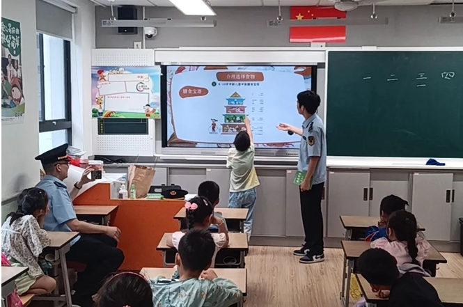 关注儿童食品安全和营养健康。执法干部详细讲解学生们关注的零食、冷饮等夏季常见的食品安全问题,包括零食如何正确选择、长期食用垃圾食品是否有害身体健康、冷饮什么时候吃最安全等。通过介绍我国居民膳食“膳食宝塔”塔和人体必需的营养物质,引导学生养成良好饮食习惯,多吃健康食品,避免偏食,减少高油、高糖食品的摄入。