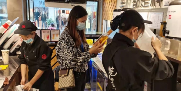 此次专项整治,重点对奶茶果茶饮品店从业人员健康证是否过期,设施设备是否符合要求,制作过程是否规范,是否存在使用过期、变质的原材料,是否存在宣传鲜果制作但部分产品用果浆代替等内容进行检查。同时,对饮品专用操作区设置、加工制作、容器洗净消毒等情况进行了认真查看,现场指导从业人员规范穿戴清洁的工作衣帽,保持个人卫生和手部清洁,并做好每日健康登记管理。