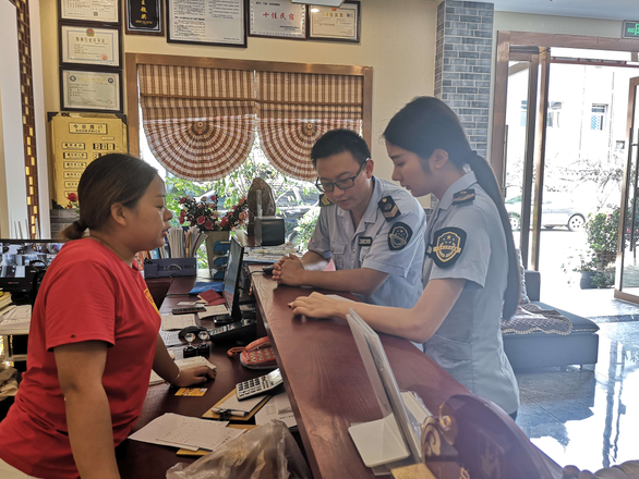 执法人员为商户做宣传推广