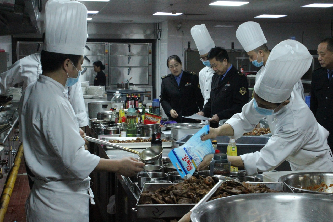 执法人员在华美达进行食品安全监管工作
