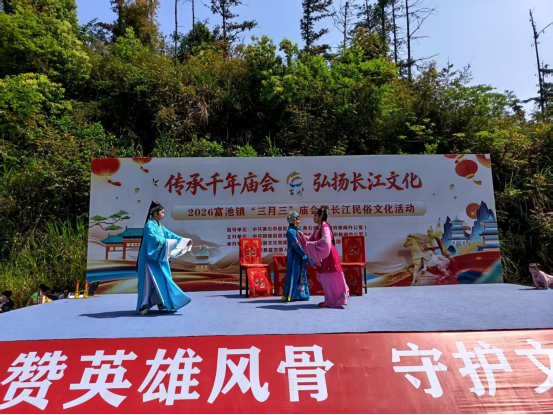 富池“三月三”庙会是湖北省省级非物质文化遗产,其起源可追溯至宋代,传承至今已逾千年,是当地及周边群众为缅怀三国名将甘宁、寄托美好祈愿而自发组织的传统民俗活动。富池镇党委副书记尹合远介绍,清雍正七年八月,当地重建甘宁墓,并正式将每年农历三月三定为扫墓祭祀日,以此颂扬甘宁“护国佑民、忠勇侠义”的精神,富池“三月三”庙会也由此正式定格,成为镌刻在当地人心底的文化印记。