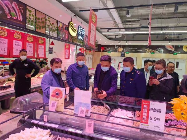 在便民市场及超市,检查组检查了食用农产品快速检测制度落实情况、检测结果公示情况,冷链食品追溯录入、附码销售情况,生鲜肉、肉制品的检疫检验情况,翻阅了食品经营单位食品采购台账,详细询问了节日期间各种生活必需品价格,叮嘱商家一定要从正规渠道进货,保证货品充足、质量安全,让老百姓买得放心、吃得安心。要求执法人员在节日期间强化食品安全监管,严格落实监管责任,强管控、稳物价、查违法、保供应,确保广大人民群众过一个安全、欢乐、祥和的节日。