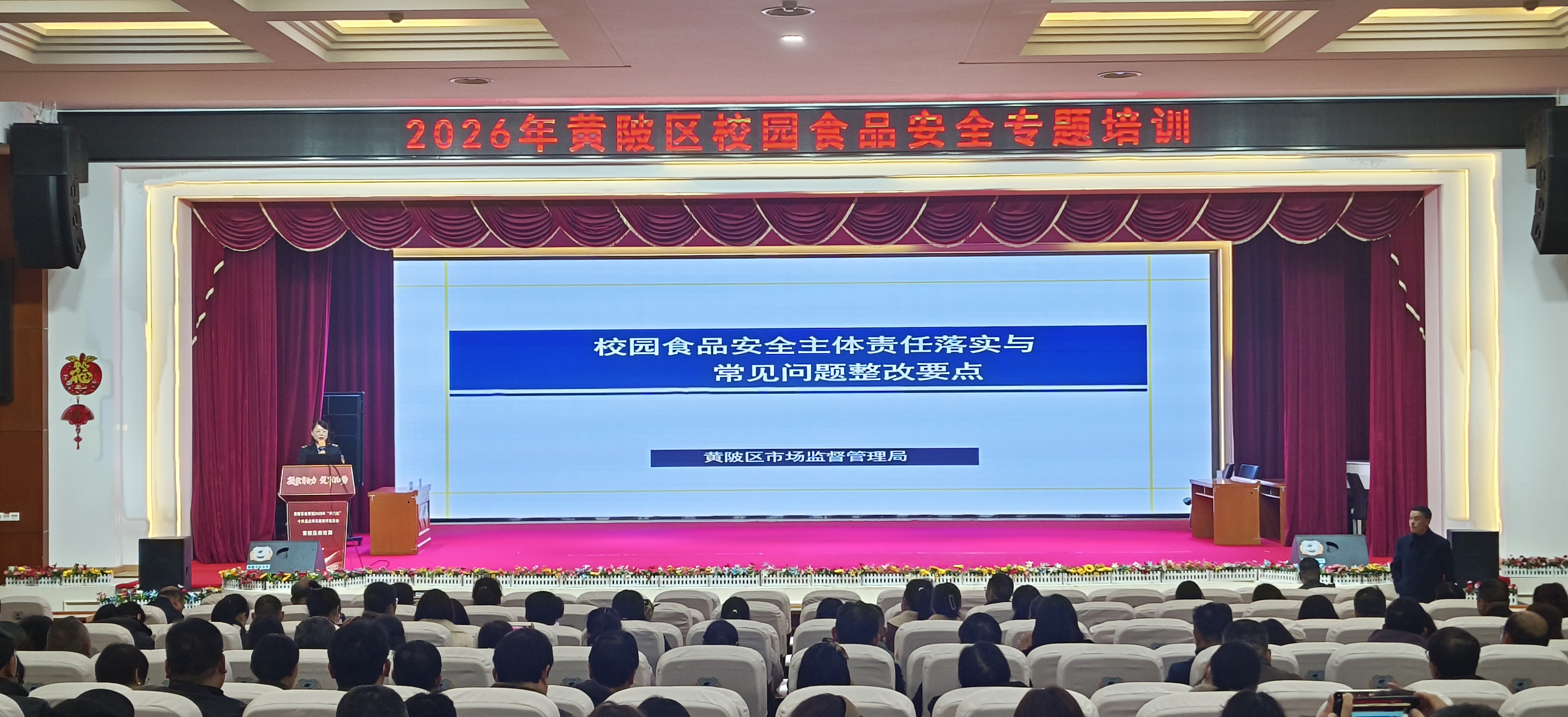 中国食品安全网讯(吴群英 记者邱水英)为巩固中小学校园食品安全专项整治成果,强化校园食品安全主体责任落实,提升从业人员风险防控能力,3月19日,武汉市黄陂区市场监管局、教育局联合召开2026年春季学期校园食品安全专题培训暨监督抽考会议,全区中小学、幼儿园分管副校(园)长、食品安全管理员及各街乡分管食品安全干事共计300余人参会。
