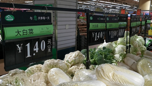 大白菜 1.4 元一斤,胡萝卜 2.9 元一斤……在中百仓储咸宁购物广场有限公司温泉店和沃尔玛超市记者发现,大部分品类的蔬果生鲜储量充足,居民基本生活物品存货齐全,菜价趋于稳定。