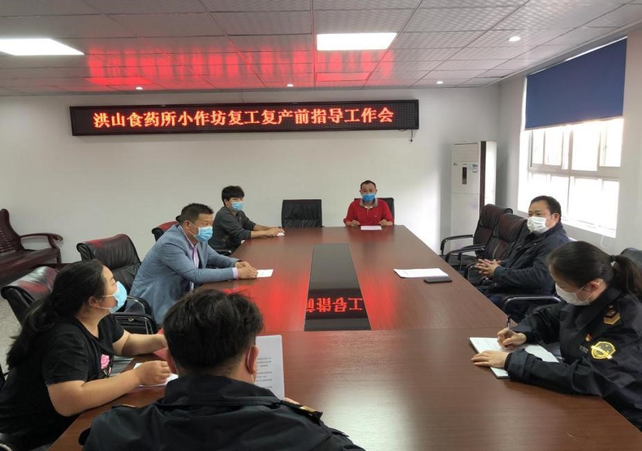 4月15日,武汉市洪山区市场监督管理局洪山食药所组织召开了食品生产小作坊复工复产前指导工作会。会议传达了湖北省、武汉市、洪山区防疫指挥部有关复工复产的相关文件精神。