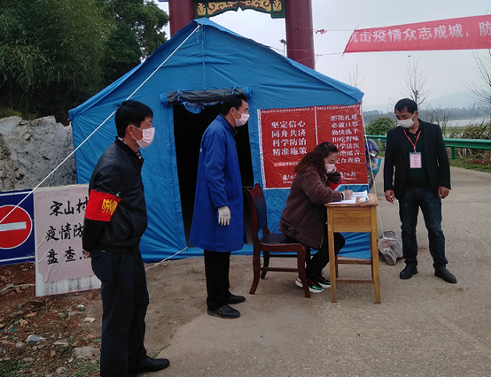 自新冠肺炎疫情发生以来,木港镇党委书记石峰、镇长石子倩立即来到这个“打工大村”,组织宋山村组干部先后召开了三次动员大会和抗疫大会。同时,柯昌斌带村组干部对出入宋山的四个主要出口进行封路封湖,并组织宋山村63名党员和6个志愿者成立4个“小喇叭劝导队”走村串户宣传,要求全村70余名返乡人员,特别是66名武汉返乡人员采取严密的居家隔离措施。宋山村组党员干部还制定了大管控、大包保的战时责任状,使全村干群自觉形成了众志成城守宋山,疫情不退不出山的良好氛围。