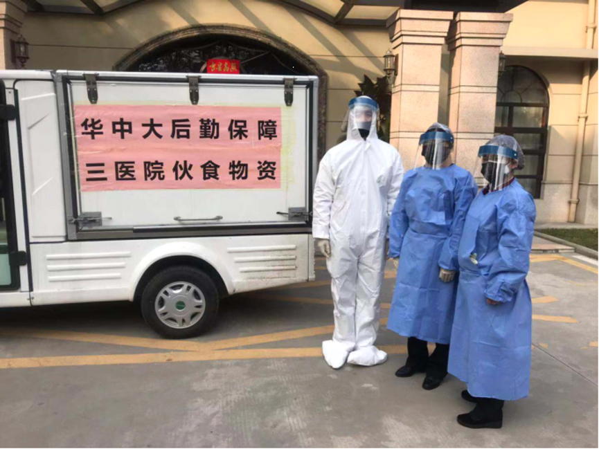 为保障餐饮安全与时效,华科大接待服务总公司员工每天早晨五点半就开始忙碌的工作,洗菜、摘菜,与时间赛跑,加班加点抢制餐品。送餐实行专车派送、专员驾驶,送餐前后对人员、车辆、盛器进行喷洒消毒,确保卫生防疫到位。同时,工作人员随餐车配送餐桌,改善医院就餐环境,方便一线医护人员就餐。