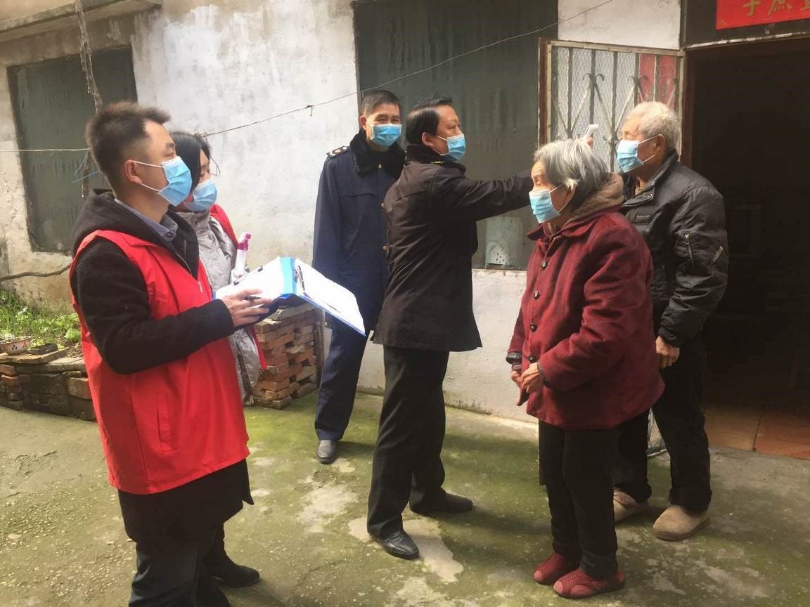 入户为社区居民测量体温