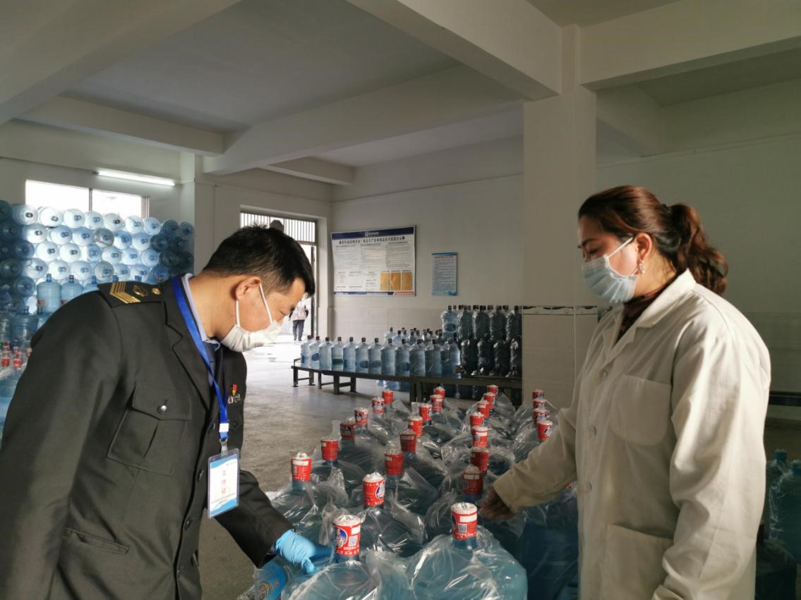 咸安区市场监管局执法人员在品洁纯净水厂检查