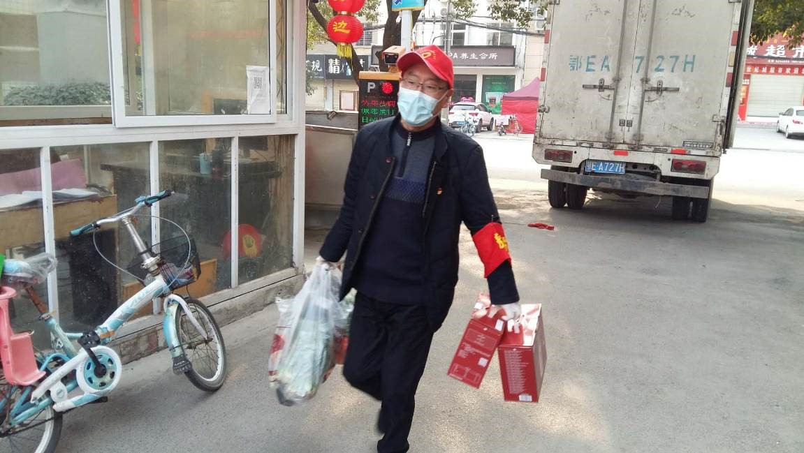 该局党组成员、副局长樊甫学为小区居民配送物资