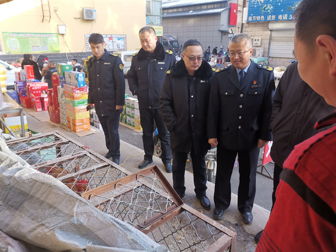 仲崇义局长与局其他领导一起正在市场检查活禽 摄影:富成军