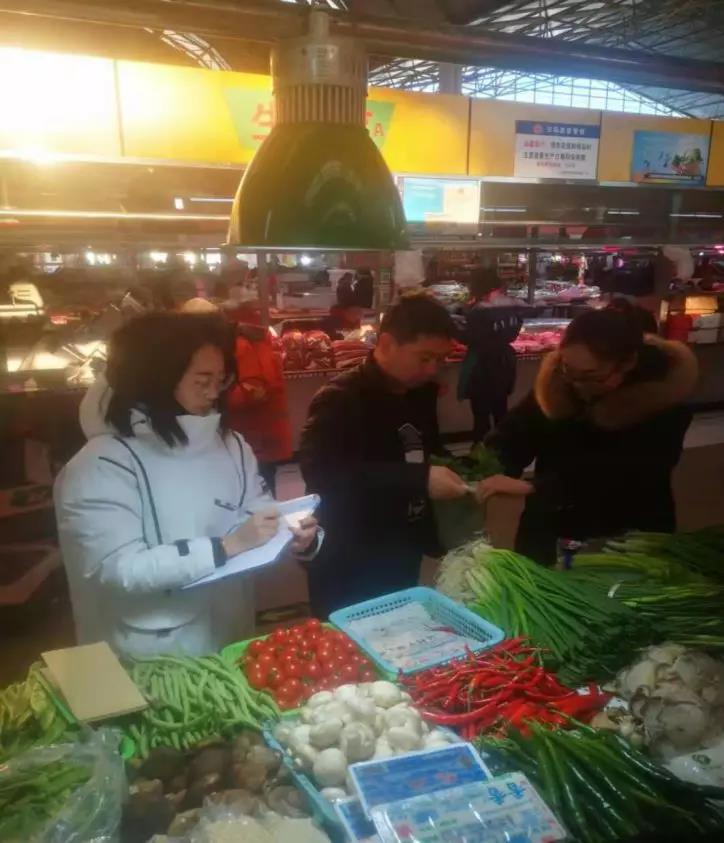 二连浩特市市场监督管理局执法人员结合农贸市场实际情况,采取“三同步”开展食品快检工作。