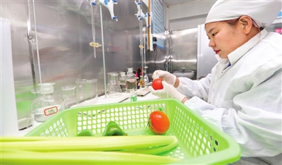对选购的新鲜蔬菜、肉类等进行农残化验,把好每一关。