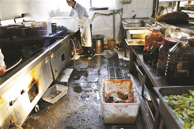 灶台周边地面上遍布污水,厨师脚边搁着炒好的菜,盛菜的容器敞着口,而掌勺的厨师正在用勺子从锅里舀出炒菜,放到嘴里尝……这是北京青年报记者暗访藏身于北京富民服装厂内的地下盒饭工厂时拍下的一幕。