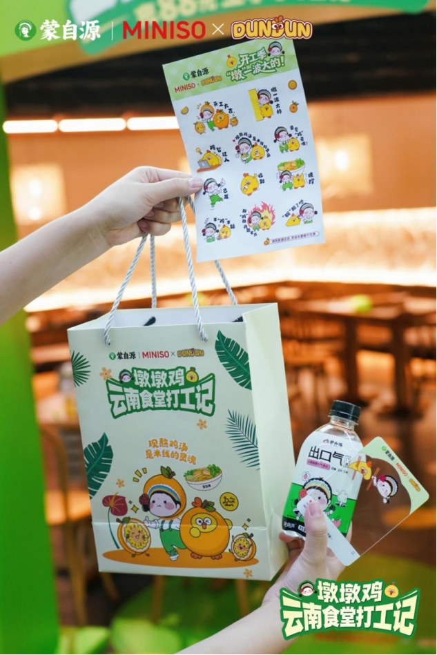 蒙自源没有盲目追逐“顶流”,而是找到了与品牌调性契合的对象。墩墩鸡的“治愈、陪伴”标签,与蒙自源“温暖、用心”的品牌温度天然匹配。两者的相遇,就像云南街头的一碗鸡汤米线配上萌趣的卡通形象——既有烟火气,又有治愈力。