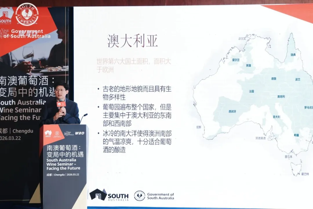 3月22日,由澳大利亚南澳州经济发展部主办、WBO葡萄酒商业观察协办的“变局中的机遇:南澳葡萄酒高峰论坛”在成都香格里拉大酒店圆满落幕。恰逢成都春糖核心节点,论坛以品鉴、交流、选品、论道为一体,汇聚行业各界人士,搭建起南澳葡萄酒深耕中国市场的高效对接平台,获得参会嘉宾一致认可。