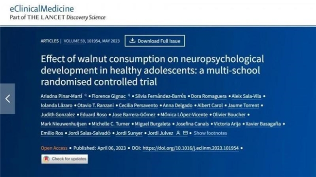 2. Pinar-Martí A, et al. Effect of walnut consumption on neuropsychological development in healthy adolescents: a multi-school randomized controlled trial. eClinicalMedicine, 2024