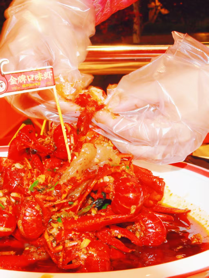 很快,“辣不怕”的名号传遍长沙城。做工程的老板、约会的情侣、慕名而来的游客、机关干部,三教九流都挤在辣不怕店里,就着啤酒啃虾壳。湖南台的主持人仇晓、汪涵成了常客,仇晓还带着那英来吃过虾,超级女声、星姐选举的选手们也把这里当成了赛后据点。鼎盛的时候,汪涵来了也得排队,邬小玲还笑着见证了李锐和芳芳的第一次约会。那些年,“快乐大本营”“越策越开心”里时常提起长沙口味虾,一口红亮的口味虾,随着电视信号走向全国,成了长沙的味觉名片。辣不怕更是联合湖南台和业界其他知名商家多次举办口味虾争霸赛,斩获湖南虾王称号,引领口味虾餐饮文化潮流。