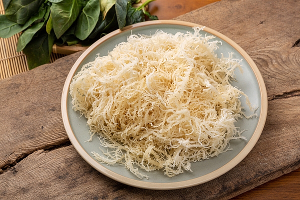 在海面上,龙须菜养殖户一大早就趁着好天气收割、打包。据了解,南日镇全镇龙须菜的养殖面积达2000多公顷,龙须菜容易养殖、生长周期短,一年可收成6到7次。龙须菜除了能当作优质饵料喂养鲍鱼,还可以作为果冻厂等厂家的原材料,是当地渔民重要的经济收入来源。