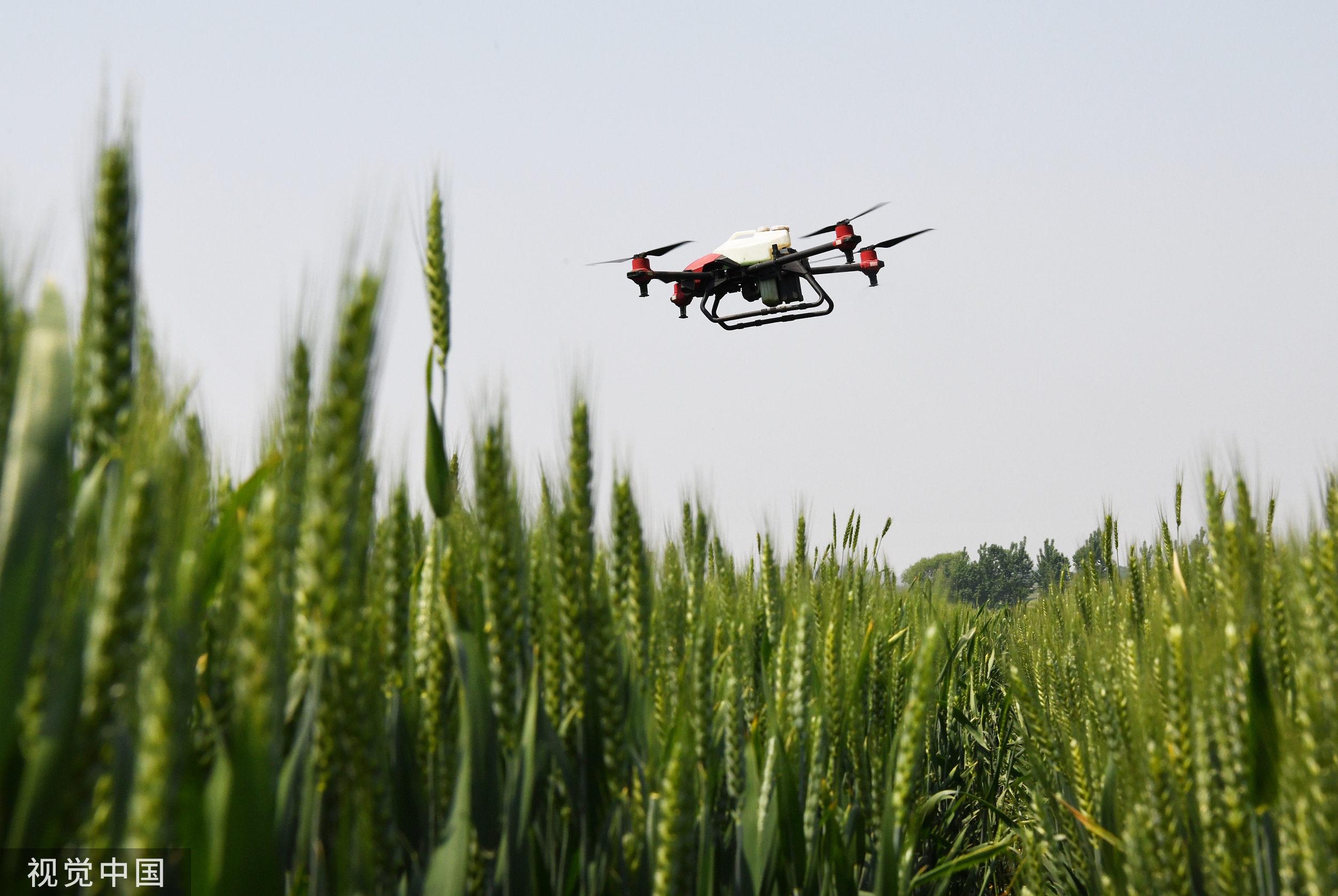 在黑龙江省齐齐哈尔市梅里斯达斡尔族区卧牛吐镇一处2万亩大豆种植集中地块,工作人员正利用植保无人机,实行喷洒作业。