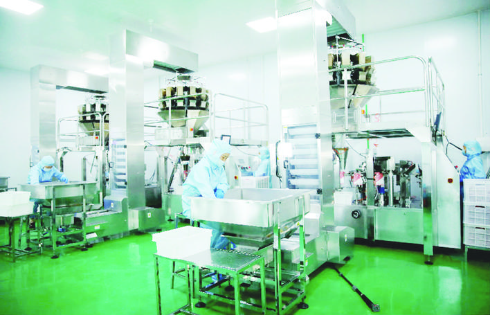 从传统加工经销到“贴牌代理+线上接单”,阳弘生物科技的产业转型红利远不止体现在逐年飙升的订单数据上,也悉数反馈到各个生产加工环节优化提升中。为了能达到食品电商品牌方近乎严苛的代工标准,阳弘生物科技开始在提升产能、效率上做文章。近年来,该公司年均投入约500万元,用于生产线换代升级,相继研发引进快速蜜糖机、风干机、自动包装机等智能化生产设备,并投建品控实验室。其中,总投资700万元的自动包装机,系果干加工行业首套全自动包装设备。