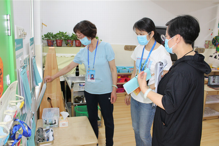 两位督学查看了教职工与幼儿的晨午检记录、因病缺勤跟踪记录、室内通风消毒记录,称赞我园每日教职员工、晨午检记录准确详实;因病缺勤跟踪记录形成闭环;教室、办公室、卫生间坚持消毒通风,记录详细。 该园防控工作的细致开展及开学工作的精心部署得到了两位督学的高度赞扬,疫情防控资料的全面详实,体现了宿幼疫情防控管理的精细、精准和精心,以及始终将师幼生命健康放在第一位的高度责任感和使命感。