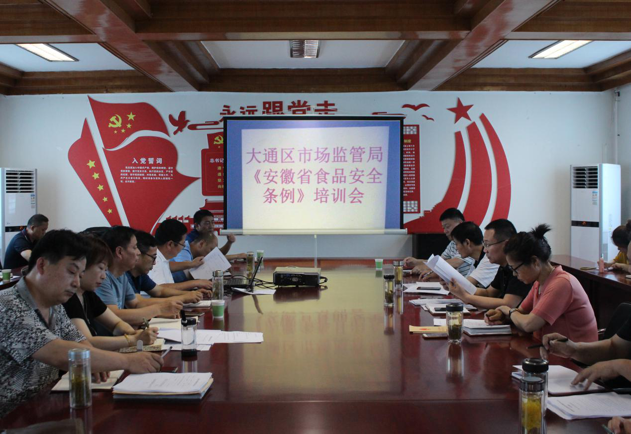 近日,安徽大通区市场监管局对全体工作人员开展了《安徽省食品安全条例》(以下简称《条例》)培训活动,会议由程龙瑞局长主持,食药股长周敏对该《条例》进行了讲解。