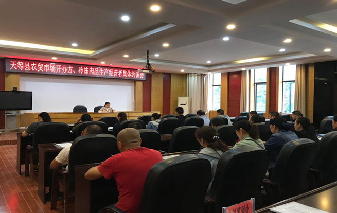 中国食品安全网讯 为进一步加强冷冻肉品市场销售监管,严防走私冻肉流入市场和餐桌,近日,天等县市场监督管理局组织全县农贸市场开办方、冷冻肉品生产经营者及负责人等30多人,就冷冻肉品生产经营安全问题进行了集体约谈。