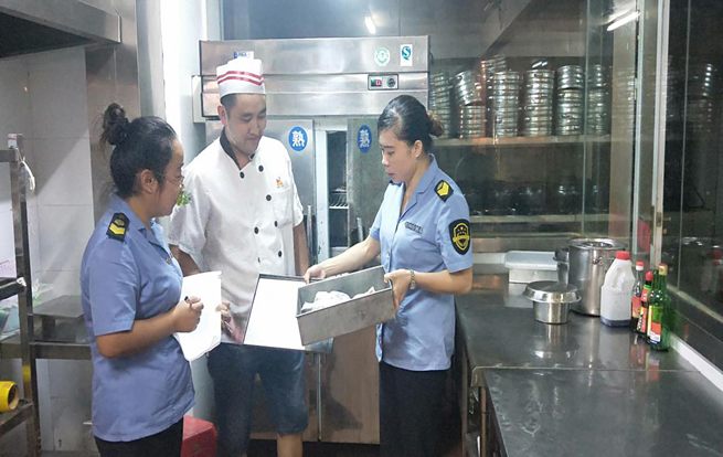 本次专项行动以大型餐饮服务单位、农家乐、排挡夜市、旅游景点及周边餐饮单位为重点检查对象;以餐饮单位的后厨卫生、仓库储存情况、原料索证索票和进货查验制度以及凉菜等高风险食品的加工过程为重点检查环节;以粽子、绿豆糕、肉与肉制品、酒类等节日消费量大、食品安全风险高的大宗食品为重点检查品种;对制售粽子的餐饮单位,重点检查经营者原辅料采购、使用及制作的关键点是否符合规范。针对检查中发现部分经营者索证索票落实不到位、卫生状况较差、粽子随意堆放等问题,执法人员责令经营者立即整改,并进行现场监督,确保整改到位。