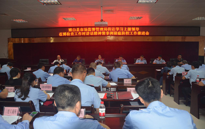 中国食品安全网讯 为切实抓好非洲猪瘟疫情防控工作,维护市场秩序稳定和消费者的消费安全,近日,博白县市场监督管理局召开非洲猪瘟防控工作推进会。