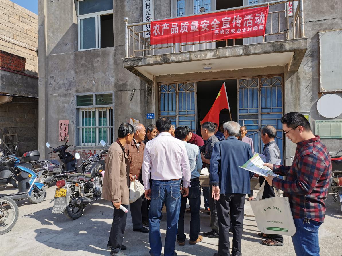 中国食品安全网讯(李永强 周兴 记者朱定荣)为贯彻落实“不忘初心、牢记使命”主题教育农产品质量安全专项整治工作部署和进一步加强农产品质量安全宣传力度,11月13日上午,莆田秀屿区农业农村局组织工作人员在秀屿区埭头镇鹅头村举办了农产品质量安全进村入户宣传活动。
