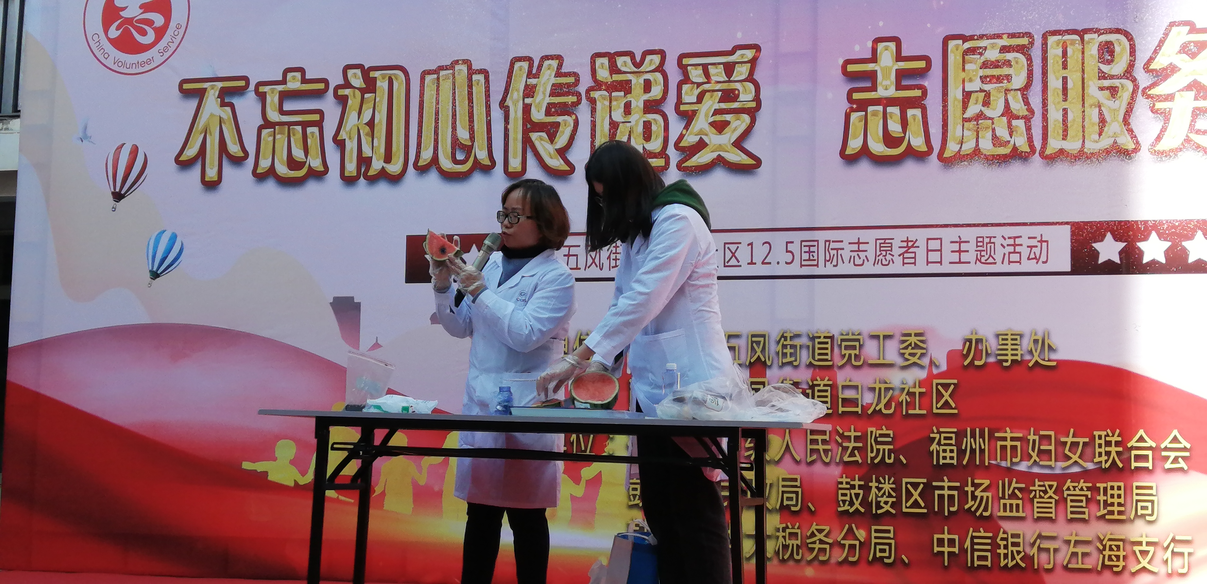 中国食品安全网讯(记者 朱定荣) 2019年12月4日上午,由鼓楼区五凤街道党工委、办事处及鼓楼区五凤街道白龙社区联合主办,福建省高级人民法院、福州市妇女联合会、鼓楼区市场监管局等联合承办的“不忘初心传递爱,志愿服务新时代”12.5国际志愿者日主题活动在白龙社区综合文化广场隆重举行。