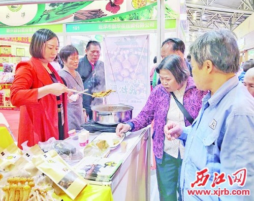 除了老牌名优特产,我市还展出一些富含科技元素的农业新产品。肇庆绿健农业科技有限公司带来了他们新近研发培育的黄金菇和虎松茸,这些外形金黄、体态优美的食用菌吸引了众多客商的眼球。该公司销售经理唐世琼表示,这两种食用菌均为他们公司从新疆引进,经过本地培育技术驯化后,历时2年成功研发的农业新品,去年6月推出市场后,市场反响非常不错。“现在我们日均销量大约在6吨左右,结合线上线下的销售渠道,公司年产值达8500万元。接下来,我们希望给本土农业注入更多科技创新元素,打造优质食用菌品牌,助力肇庆品牌农业、特色农业发展。”唐世琼说。