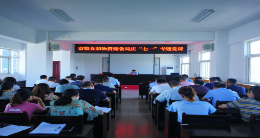漯河市粮食和物资储备局党组书记于怀洋围绕“不忘初心、牢记使命”的主题,为全体党员干部讲党课现场