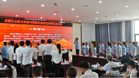 中国食品安全网讯(刘静 孙涛 记者胡毅)7月17日,武汉市黄陂区市场监管局第一党支部与汉口北直播产业链党支部联合举办“‘党建红’引领‘小个专’‘市监蓝’服务‘新业态’”主题党日活动。黄陂区委常委、组织部部长易振波,副区长姜明等领导出席活动并作重要讲话。黄陂区市场监管局领导班子成员、汉口北集团党委负责人以及97名党员代表参加,活动由黄陂区市场监管局副局长、第一支部书记胡莉萍主持。