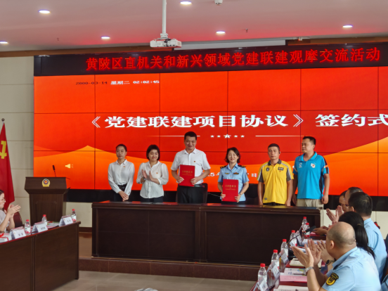 黄陂区人民政府副区长姜明在讲话中指出,此次党建联建活动是创新市场监管服务模式的重要实践。他强调,要充分发挥“党员直播间”等项目的桥梁作用,将党的政治优势和组织优势转化为企业发展优势,既要守住安全底线,又要激发市场活力。
