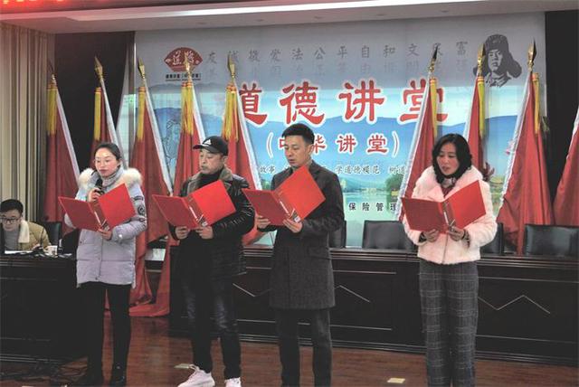 本次道德讲堂以“提升道德修养、砥砺个人修为”为主题,共设置了开场三问、向“德”鞠躬、唱歌曲、学模范、谈感悟、诵经典、送吉祥、做善事八个环节。