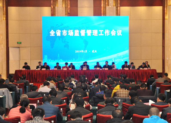 1月22日上午,全省市场监管工作会议在武汉召开。会议以习近平新时代中国特色社会主义思想为指导,深入贯彻落实党的十九大和十九届二中、三中全会精神,传达贯彻省委十一届四次全体(扩大)会议暨全省经济工作会议、省“两会”和全国市场监管工作会议精神,总结2018年工作,部署2019年任务。省市场监管局全体局领导,省市场监管局各机构改革工作组、业务工作组临时召集人,各直属机构、局属单位负责人,各市、州、直管市、林区工商局、质监局、食药监局、知识产权局主要负责人和物价局分管价格监管工作的副局长参加会议。省市场监管局党组书记、局长邹贤启作工作报告,省政府研究室党组书记、主任覃道明受邀作全省经济形势报告。