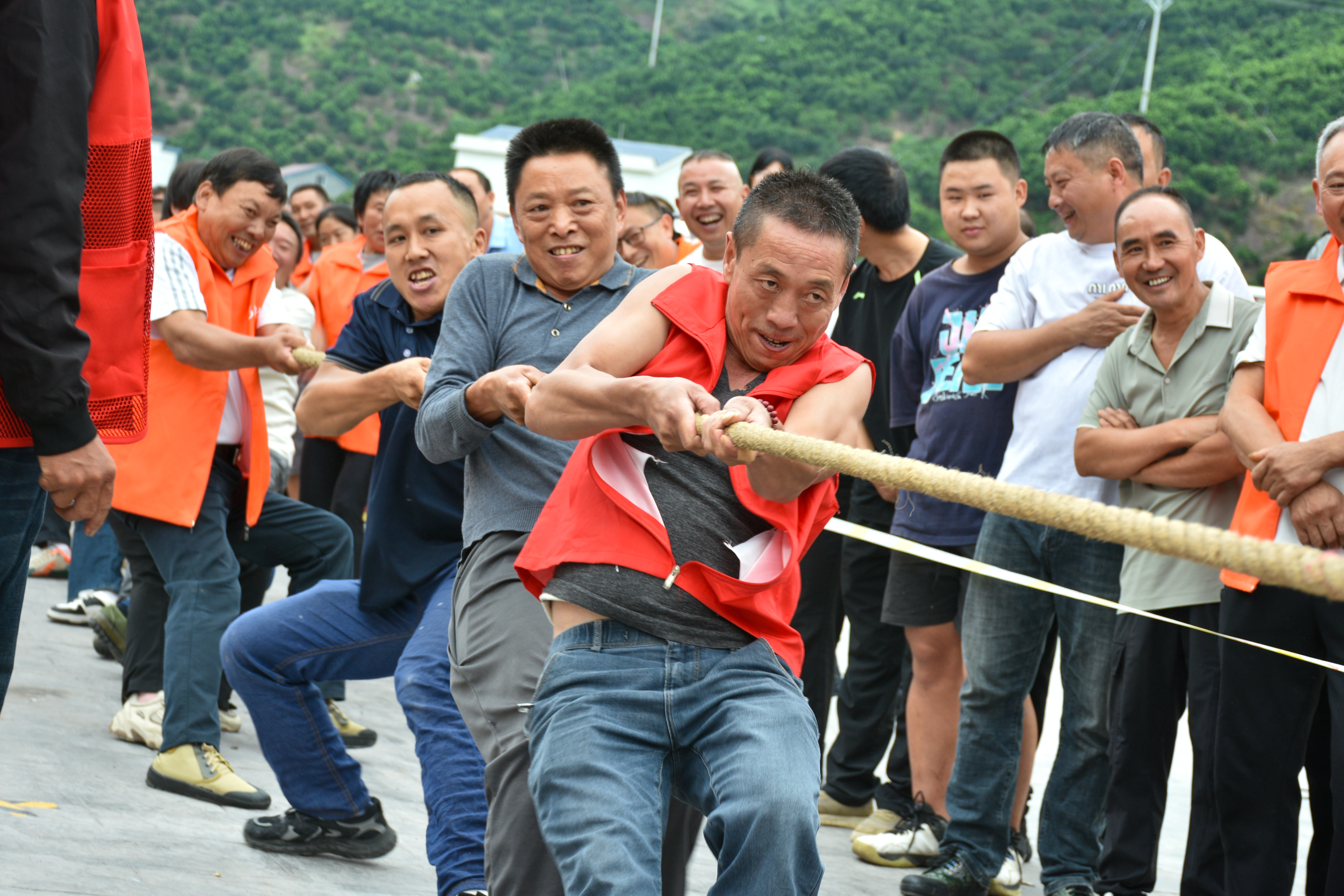 “橙”心协力・拔河比赛:16支村落队伍通过抽签分组角逐,每队10人(8男2女),最终决出冠、亚、季军,人均奖励标准与接力赛一致。
