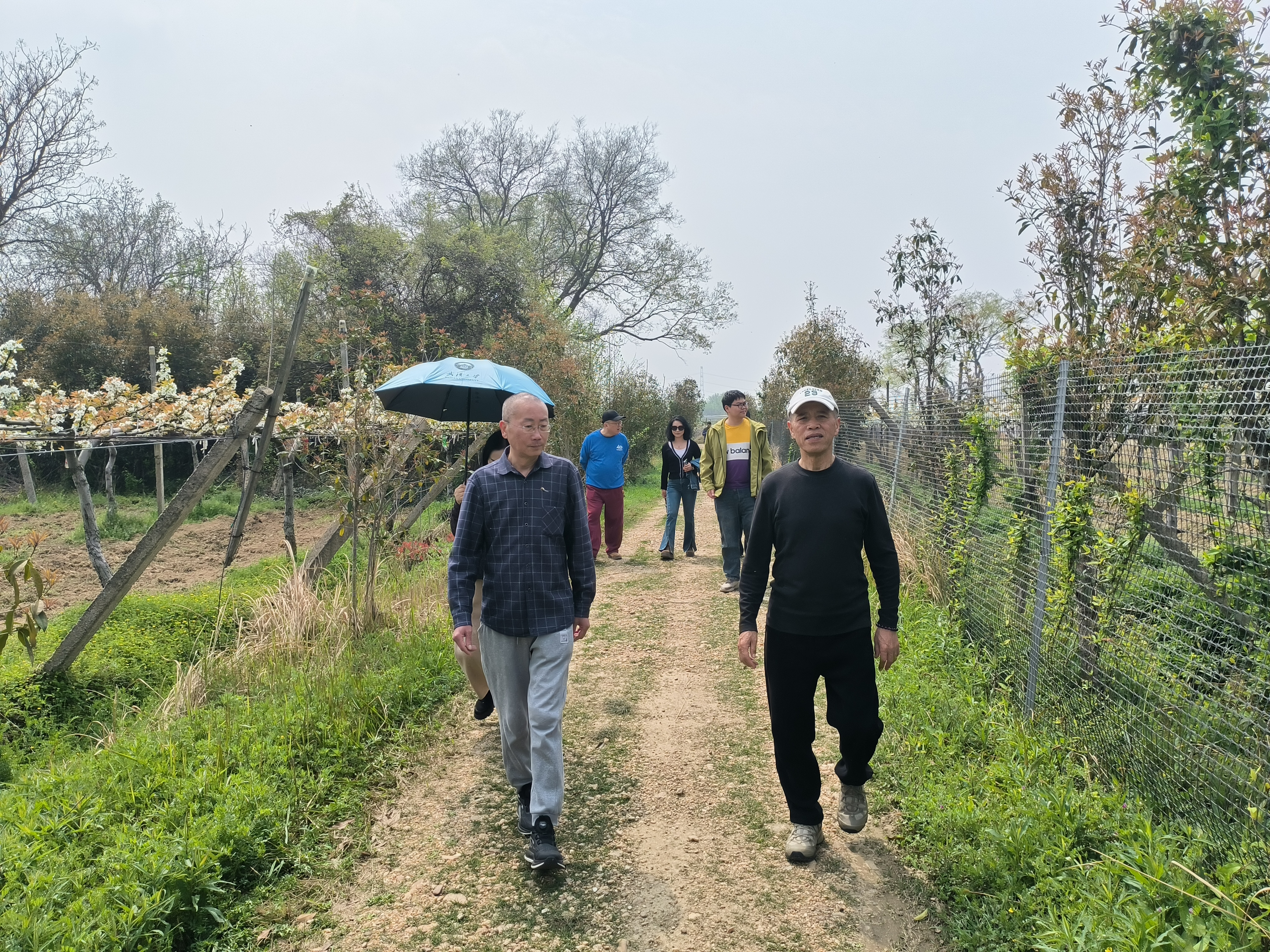 当天,因为诗人、书法家、历山书院院长姚洪磊博士的诚邀,中国艺术研究院写意画院导师、武汉大学教授陈瑛,湖北古琴吟诵专委会主任、非遗东腔调吟诵传承人陈思中教授,湖北非遗研究中心常务副主任、中华吟诵文化研究所所长肖金云博士等文化名家,以及武汉德创生态农业有限公司总经理陈任忠和媒体代表一同走进梨园,在如雪梨花中沉浸式感受春日盛景,实地探访生态梨园建设成果。
