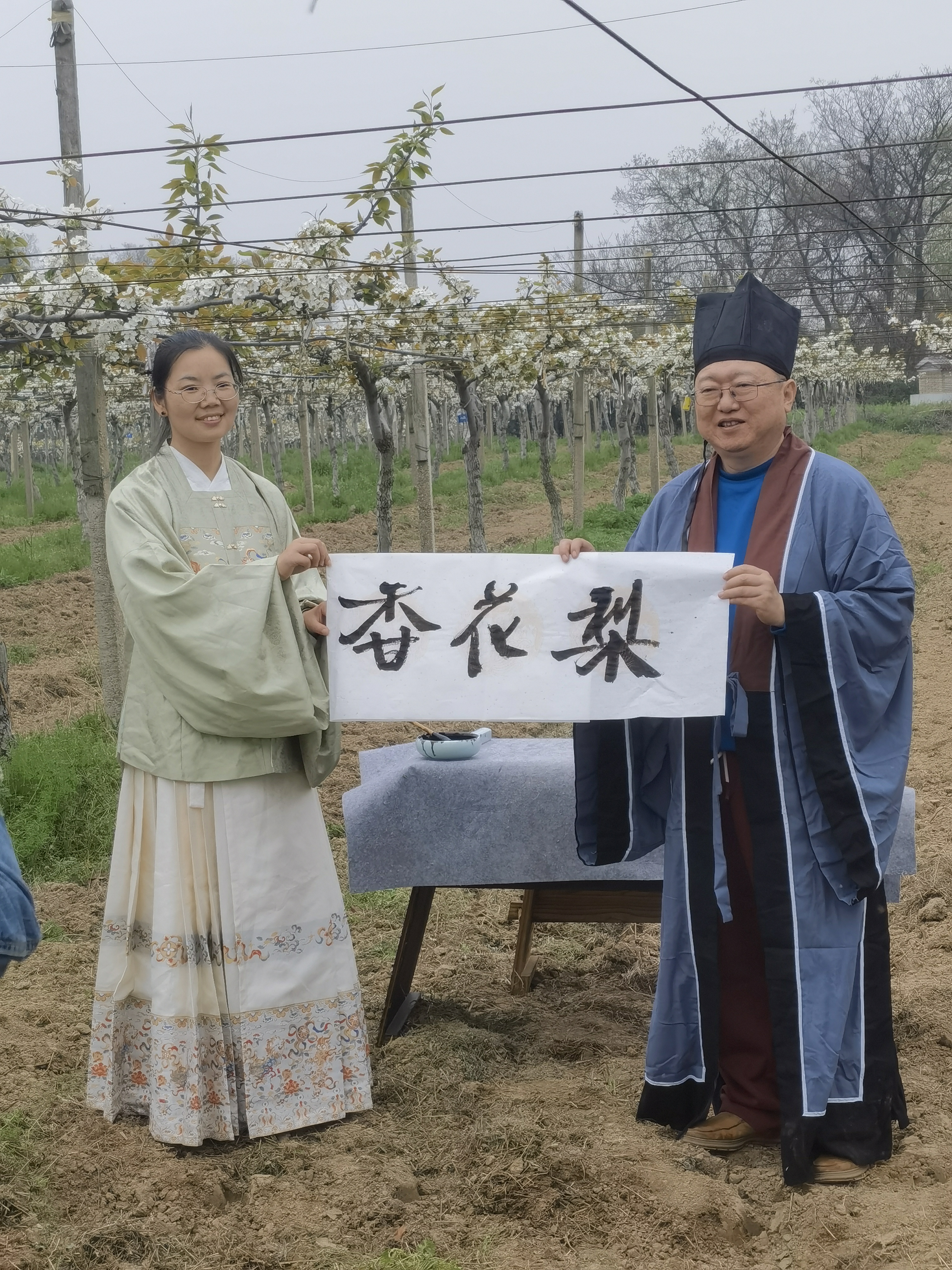 梨花树下,一场别开生面的文化雅集热闹上演。嘉宾们抚琴轻弹、吟诵抒怀,挥毫泼墨、落笔生花,悠扬琴声与淡淡花香交织,笔墨书香与田园风光相融,大家边赏美景边畅聊思路,以文化创意为生态梨产业提质增效、注入新动能。