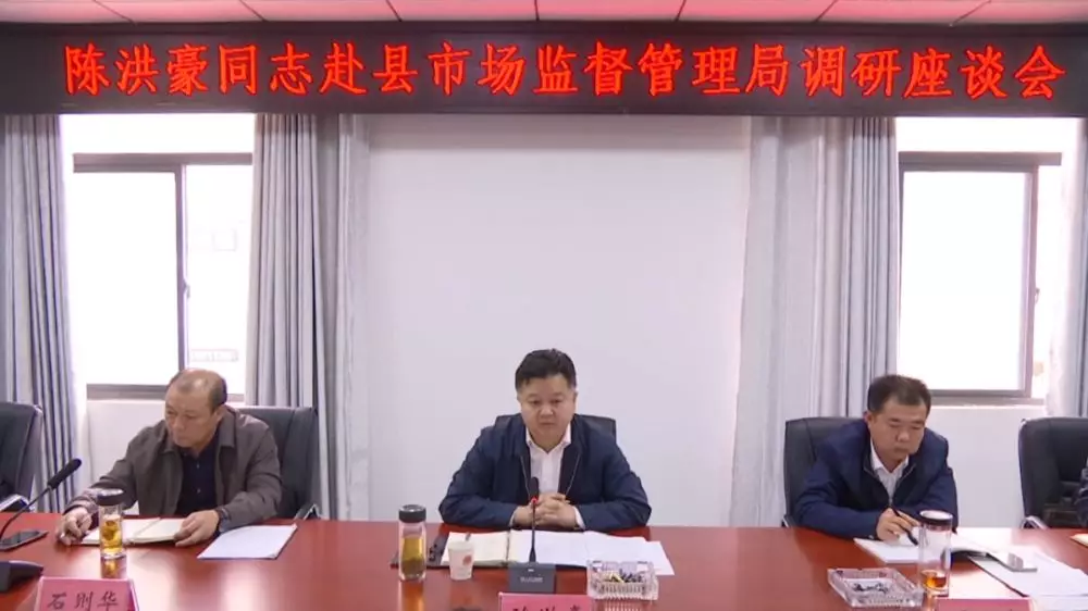 中国食品安全网讯(熊源) 11月6日,咸宁市通山县委副书记、县长陈洪豪到通山县市场监督管理局调研并座谈。通山县委常委、常务副县长吴涛,通山县政府党组成员、富水湖湿地公园管理处主任石则华,通山县政府办主任游涛等参加调研座谈。
