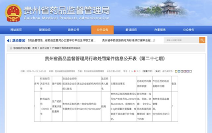 10月25日,贵州省药品监督管理局行政处罚案件信息公开表(第二十七期)公开了“贵州光正制药有限责任公司生产劣药诺氟沙星胶囊案”的信息。