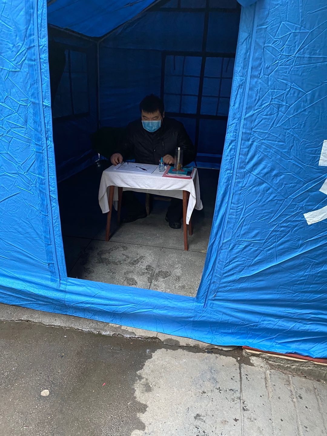 每天,肖云涌会与其他志愿者一同轮流值守卡点,确保卡点24小时不停歇,他们需要对小区的进出人员进行登记、测量体温、向群众宣传讲解政策。