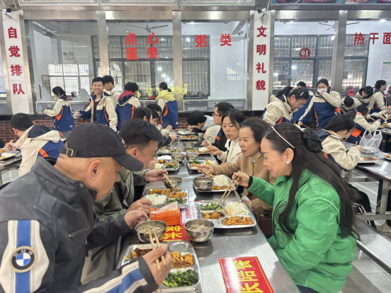 实地考察的终点是与学生共进午餐的陪餐环节。代表们与学生们同桌就餐,亲身体验饭菜的口味、温度与品质,并亲切询问学生的用餐感受。