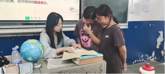 初登讲台的杨茜深知,“站稳讲台”必须具备过硬的教学本领。她把老教师的教案当作“秘籍”,每天提前到办公室逐页研读,用红笔标注“课堂导入技巧”“学生互动设计”等关键要点;放学后留在宿舍反复练习板书、打磨教态,甚至对着镜子纠正语气与眼神。听张绍颂老师讲授《孔乙己》时,她学到了“找课文突破口”的教学秘诀——张老师通过“孔乙己的长衫”解读人物迂腐本性,让学生瞬间领悟课文深意。课后,杨茜追着张老师请教:“怎么才能精准找到课文的‘魂’?”张老师的回答让她豁然开朗:“多琢磨学生的生活,把课文和他们熟悉的乡野事、身边事绑在一起。”